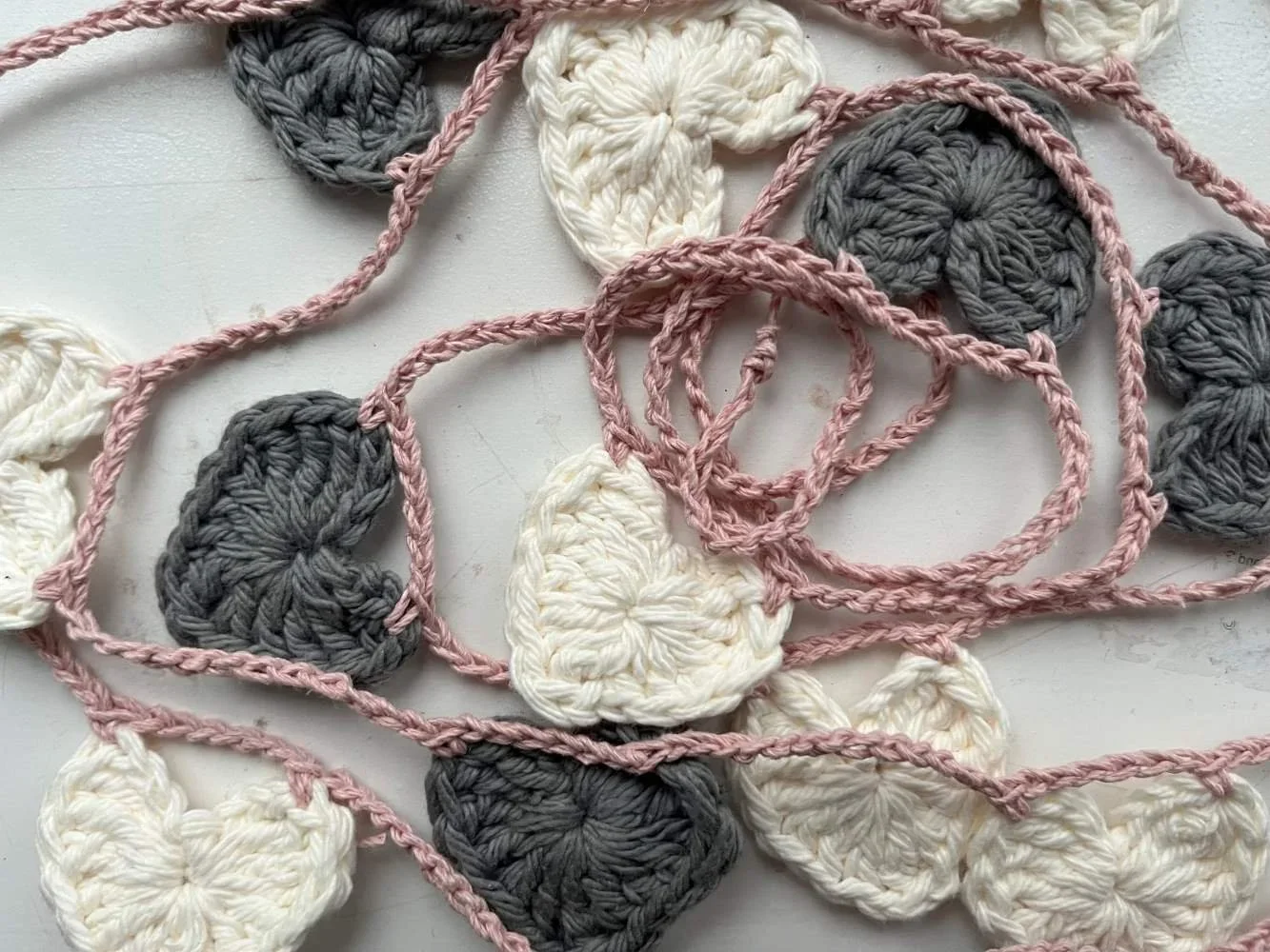 There’s something undeniably cheerful about a line of tiny crochet hearts swaying gently from a window or pinned across a shelf.