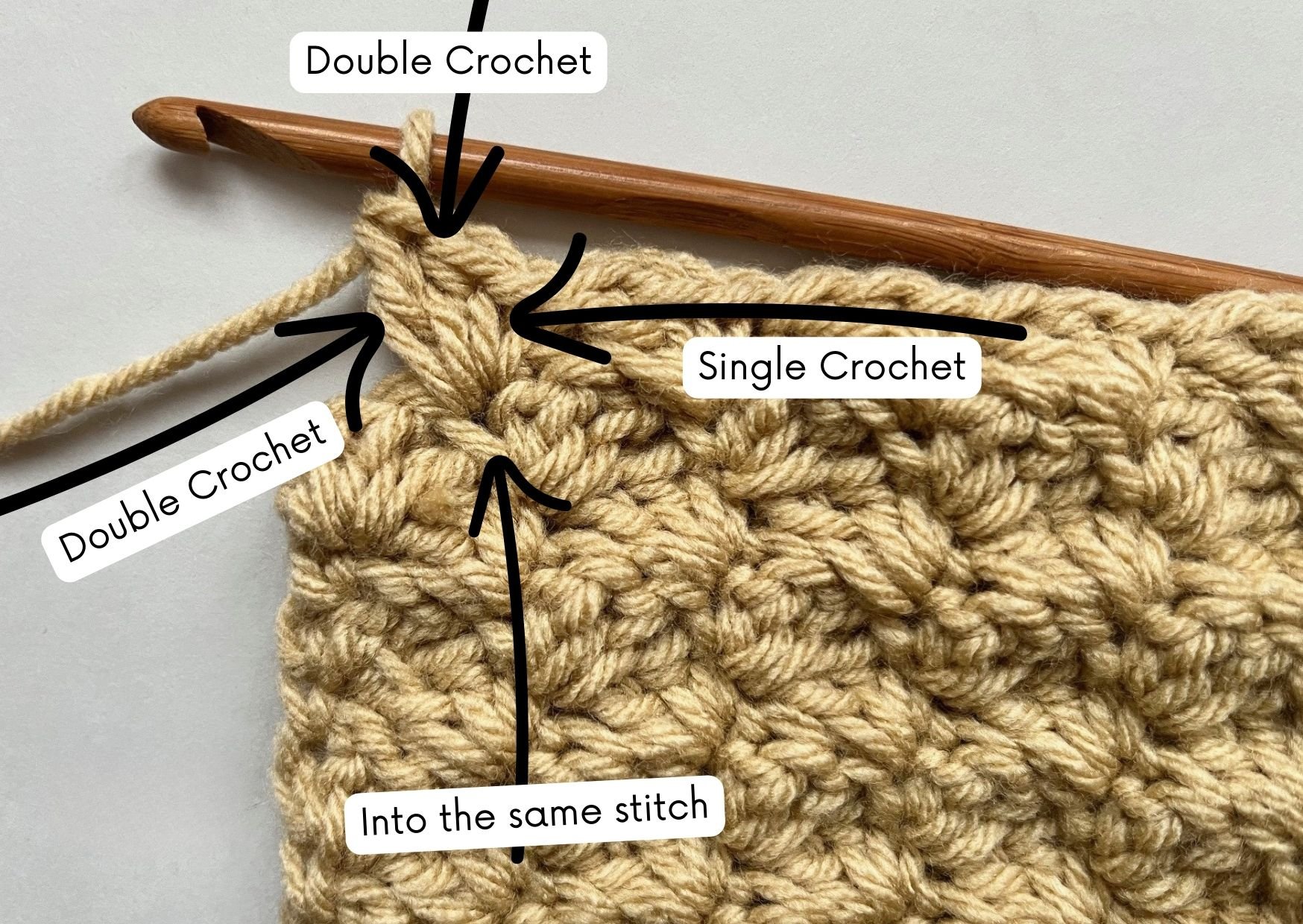 If beginners place it into a double crochet by mistake, the rows shift and the texture becomes uneven.